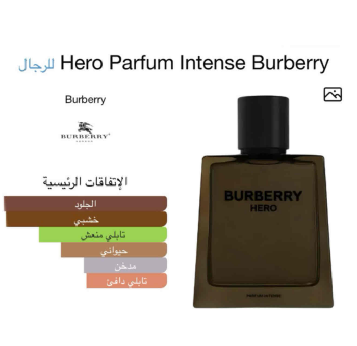 Hero Parfum Burberry عطر شرقي – خشبي للرجال . هذا عطر جديد Hero Parfum صدر عام 2024. إفتتاحية العطر الأميريس; قلب العطر خشب الأرز; قاعدة العطر من السيبرول (الناجراموثا).