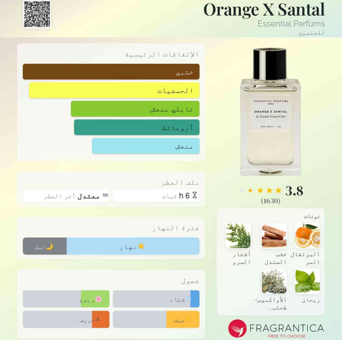 Orange X Santal Essential Parfums عطر حمضيات – أروماتك للجنسين. Orange X Santal صدر عام 2018. Natalie Gracia-Cetto قام بتوقيع هذا العطر.
